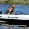 Серия надувных лодок «А ЛАЙТ» — универсальные лодки для рыбалки на разных водоемах, в том числе больших озерах и реках. Благодаря большому диаметру баллона, лодки этой серии получили достаточный запас плавучести и мореходности, а четко выверенное надувное безкилевое стационарное надувное дно позволило достичь максимальных скоростных характеристик даже под моторами малой мощности и максимальной остойчивости. Но, основным преимуществом надувных лодок серии «А Лайт», конечно же является ВЕС. Лодка Хантер 385 А Лайт обладая не малыми габаритами весит всего 33 кг. без навесного оборудования, вес полного комплекта в сумке составляет 44 кг.